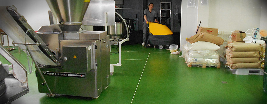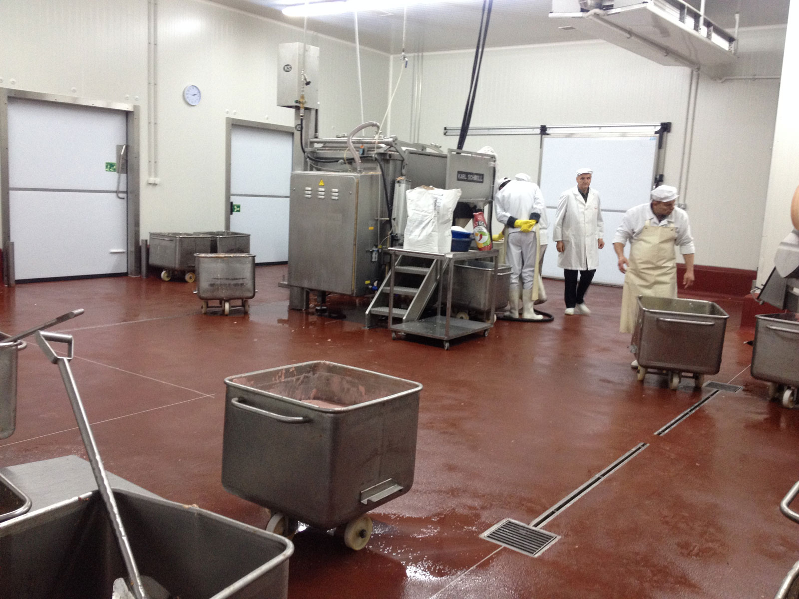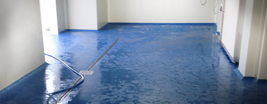 monolitn epovršine, bez fuga i zazora, spojevi sa zidovima u vidu holkera, pranje hemijskim sredstvima i vodom pod pritiskom.